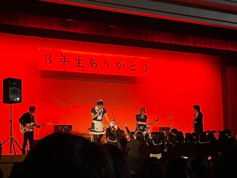 Au japon’ l’année scolaire se termine en mars et la rentrée est en avril. Il y a pas eu beaucoup de cours au mois de mars, principalement des tests, réunion informatique ou des événements comme la fête d’au revoir des troisième année ou la remise des diplômes. Pour la fête des dernières années, ceux qui voulaient avoir fait des petits spectacles ( dance, humour, musique….),même les profs ont participé; il y a un groupe de profs qui a jouer de la musique tout en étant déguisé, ainsi qu’un defilement de photos des troisième année, c’était très amusant. Pour la remise des diplômes, nous avons recouvert tout le gymnase de sorte de grand tapis. La cérémonie était vraiment très carré et solennelle.